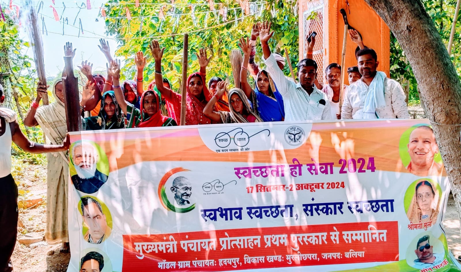 लालगंज (बलिया)। स्वच्छता ही सेवा 2024 अन्तर्गत "स्वभाव स्वच्छता- संस्कार स्वच्छता" की थीम पर शनिवार को विकास खण्ड मुरली छपरा के मुख्यमंत्री पंचायत प्रोत्साहन प्रथम पुरस्कार से सम्मानित मॉडल ग्राम पंचायत हृदयपुर में जनप्रतिनिधियों के साथ आम जनमानस ने भी स्वच्छता अभियान में बढ़ -चढ़ कर प्रतिभाग एवं श्रमदान किया।
